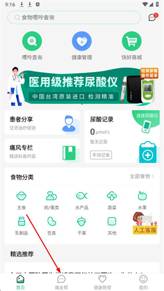 1、打開痛風(fēng)快好APP,點(diǎn)擊導(dǎo)航欄中的痛友幫。