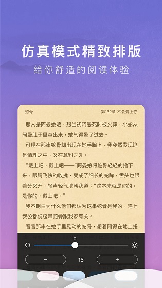 仿真翻頁,排版精美,任意選擇搭配適合自己的背景字體,給您最好的閱讀體驗。全本小說實時更新,追書必備電子閱讀器!
