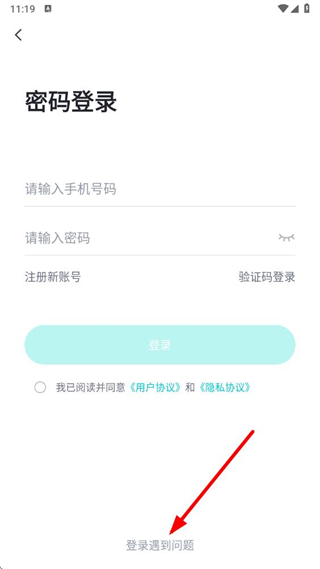 2、在密碼登錄頁面,點擊底部登錄遇到問題選項。