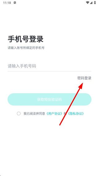 1、進入小立管家手機號登錄頁面,點擊密碼登錄選項。