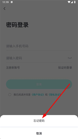 3、在彈出的選項中,點擊忘記密碼選項,進入忘記密碼頁面。
