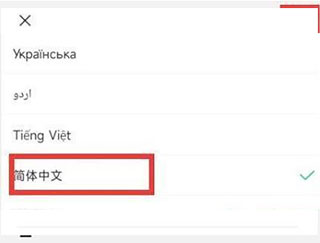 3.下滑就能看見“簡體中文”,點(diǎn)擊確認(rèn)勾選;