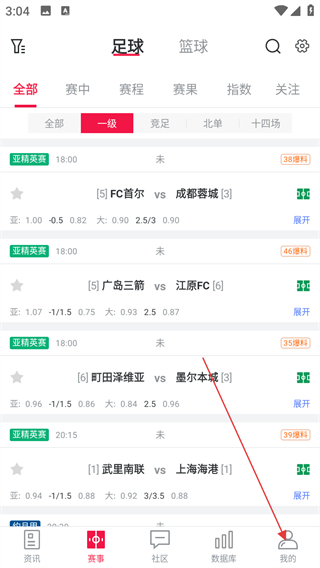 1、打開足球財(cái)富APP,點(diǎn)擊導(dǎo)航欄我的選項(xiàng)。