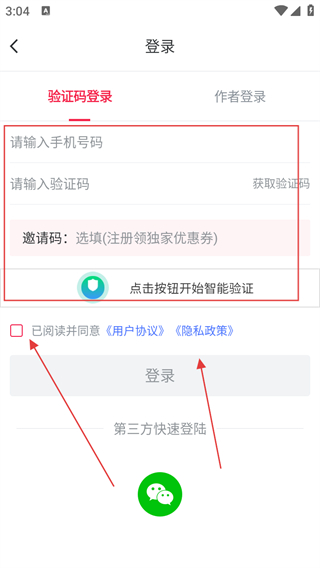3、輸入手機(jī)號(hào)碼、驗(yàn)證碼,勾選協(xié)議,完成智能驗(yàn)證后即可。