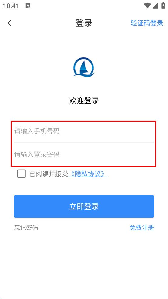 3、進入登錄頁面,在相應輸入框中依次輸入手機號碼和登錄密碼。