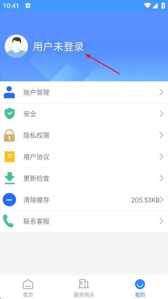 2、在“我的”頁面,點擊上方顯示“用戶未登錄”的區(qū)域。