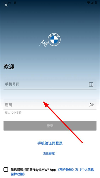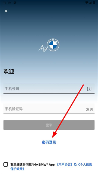 4、在密碼登錄界面,依次填寫手機(jī)號與密碼,勾選相關(guān)協(xié)議后點擊登錄按鈕,完成賬號登錄操作。