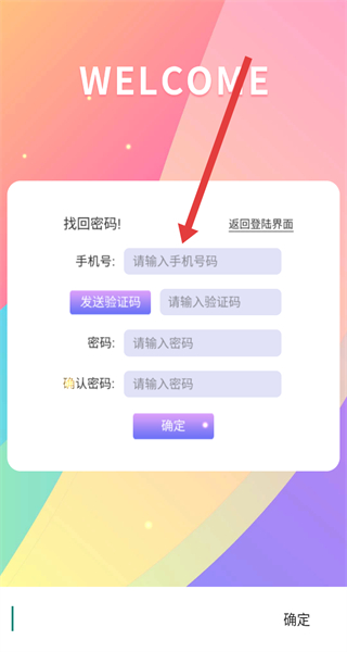3、在找回密碼界面,填寫對(duì)應(yīng)信息后,設(shè)置新密碼并確認(rèn)密碼后,點(diǎn)擊確定按鈕,完成密碼找回操作。