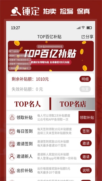 分享有禮:推薦新用戶或者老用戶簽到獎(jiǎng)勵(lì)百億補(bǔ)貼額度。