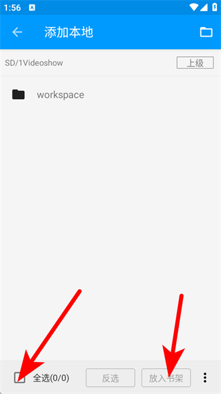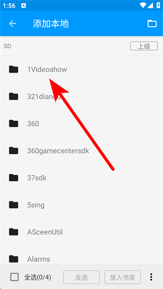 3、在本地文件選擇界面,選擇存放書籍的文件夾,進入文件夾內(nèi)容界面。