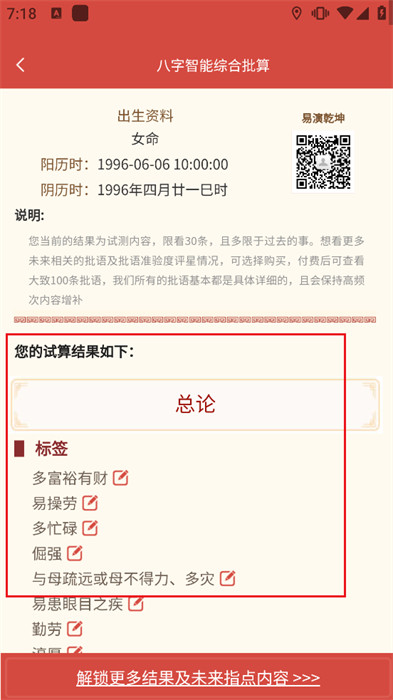 3、接著,就能看到一些簡單的解析內(nèi)容,可以當(dāng)娛樂玩法來測算;