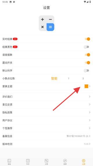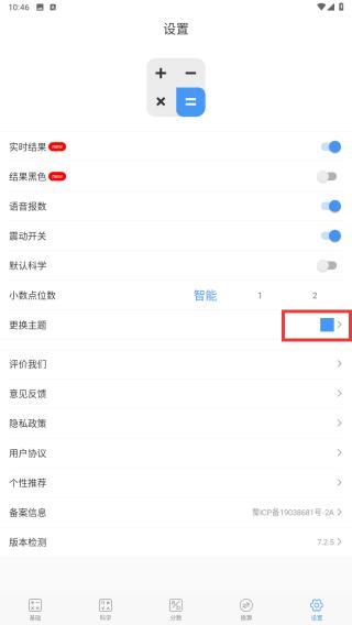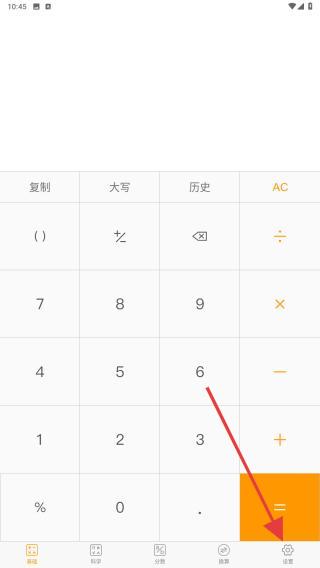 1、打開(kāi)精準(zhǔn)計(jì)算器APP,在首頁(yè)內(nèi)點(diǎn)擊右下角設(shè)置的圖標(biāo)。