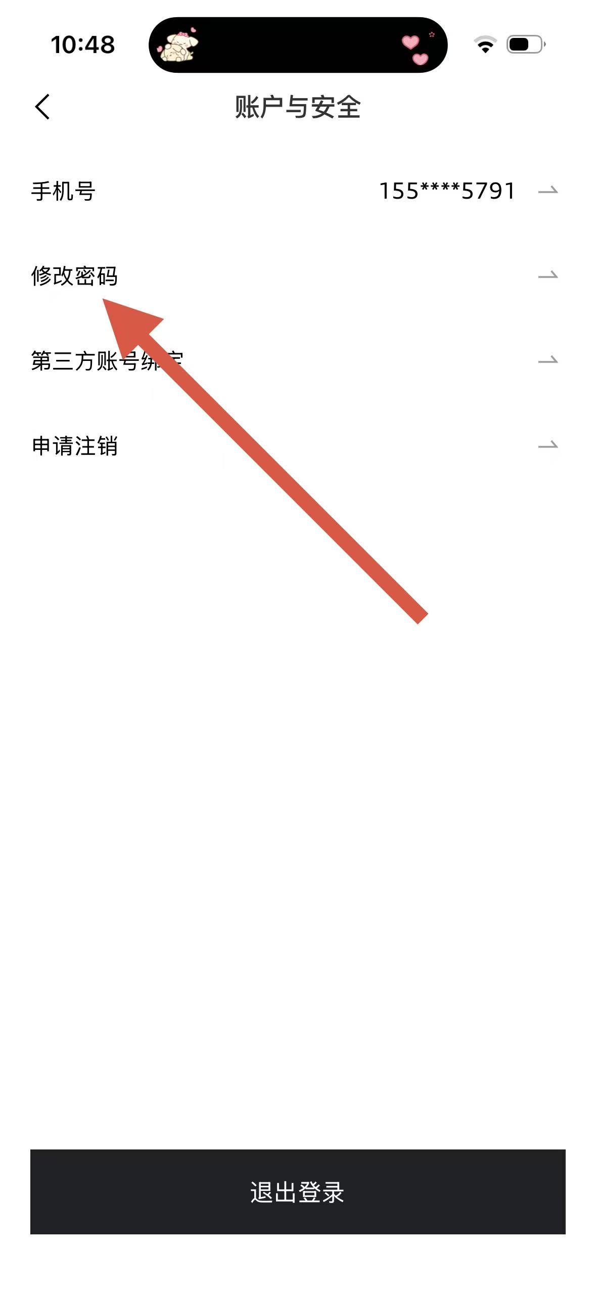 4、在賬戶與安全界面,點(diǎn)擊修改密碼選項(xiàng),進(jìn)入修改密碼頁(yè)面。