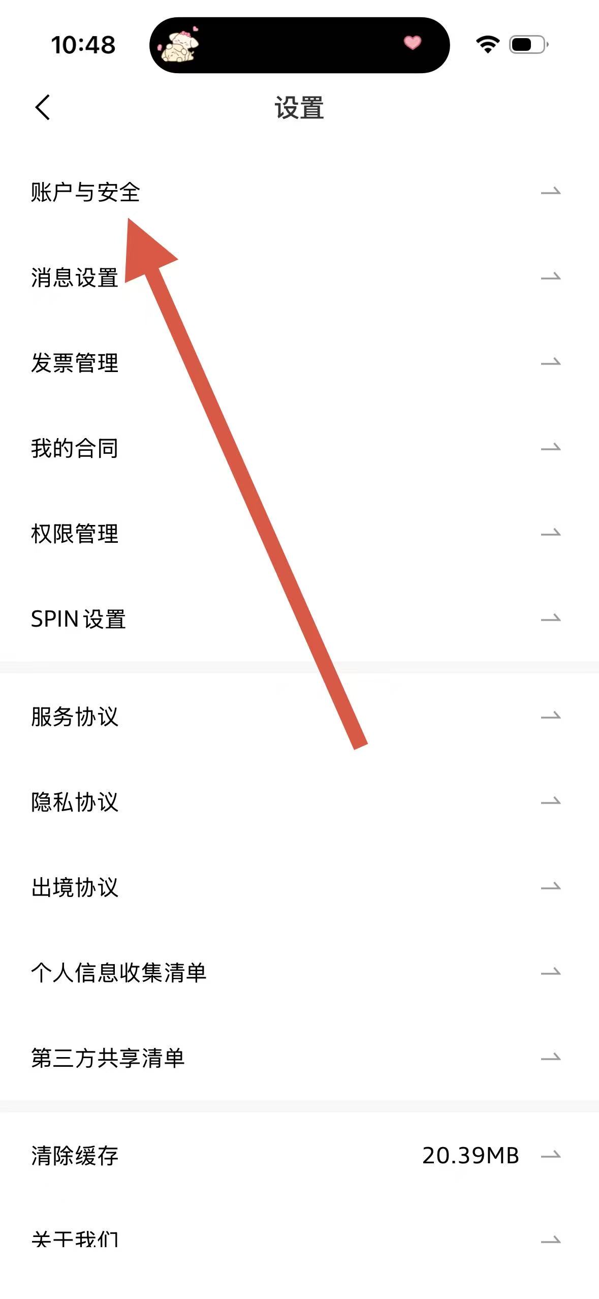 3、在設(shè)置頁(yè)面,點(diǎn)擊賬戶與安全選項(xiàng),進(jìn)入對(duì)應(yīng)設(shè)置界面。