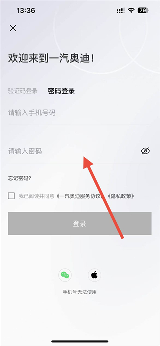 4、在密碼登錄頁(yè)面,依次輸入手機(jī)號(hào)碼、密碼,勾選協(xié)議后,點(diǎn)擊登錄完成賬號(hào)登錄。