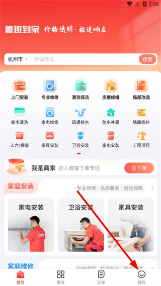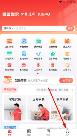 1、在魯班到家app首頁底部,找到我的選項并點擊,進入個人中心頁面。