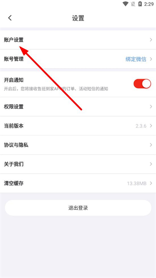 3、在設置界面里,點擊賬戶設置選項,進入賬號設置操作。