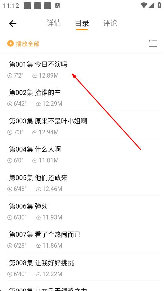3、在目錄頁(yè)面,點(diǎn)擊想要收聽的具體集數(shù),如第001集今日不演嗎。