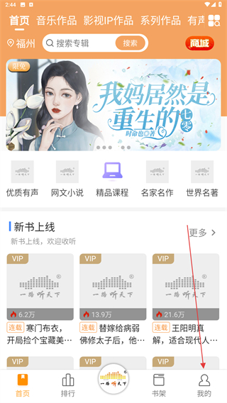 1、打開一路聽天下APP,進(jìn)入時(shí)點(diǎn)擊右下角我的按鈕。