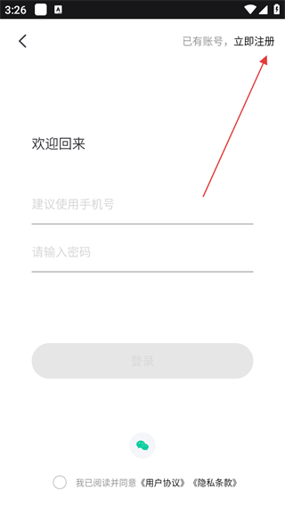 3、在登錄頁面,點(diǎn)擊右上角立即注冊(cè)。