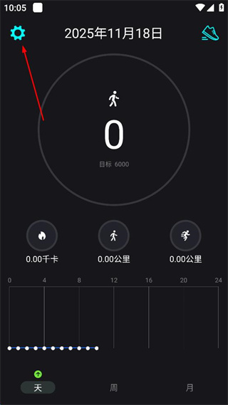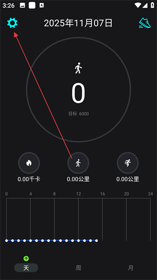 1、打開運(yùn)動(dòng)跑步APP,點(diǎn)擊左上角設(shè)置圖標(biāo)。