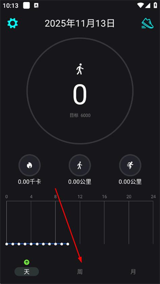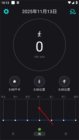 1、打開運(yùn)動(dòng)跑步APP,在首頁點(diǎn)擊底部周,可查看一周內(nèi)的步數(shù)情況。