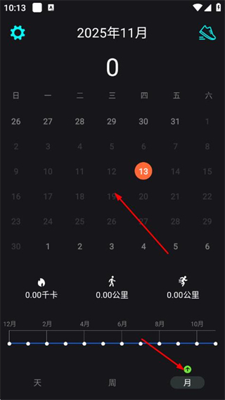 3、在月視圖頁面中,點(diǎn)擊具體日期,即可查看該日期的步數(shù)詳情。