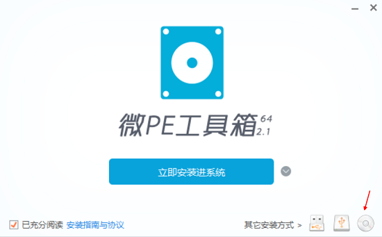 雙擊下好的WePE安裝包,點擊下圖所示的圖標,將WePE生成iso文件