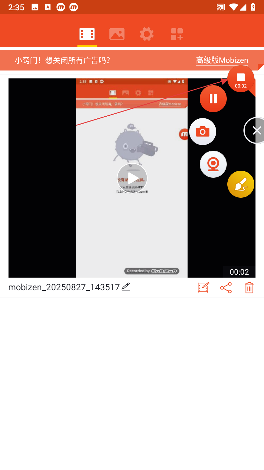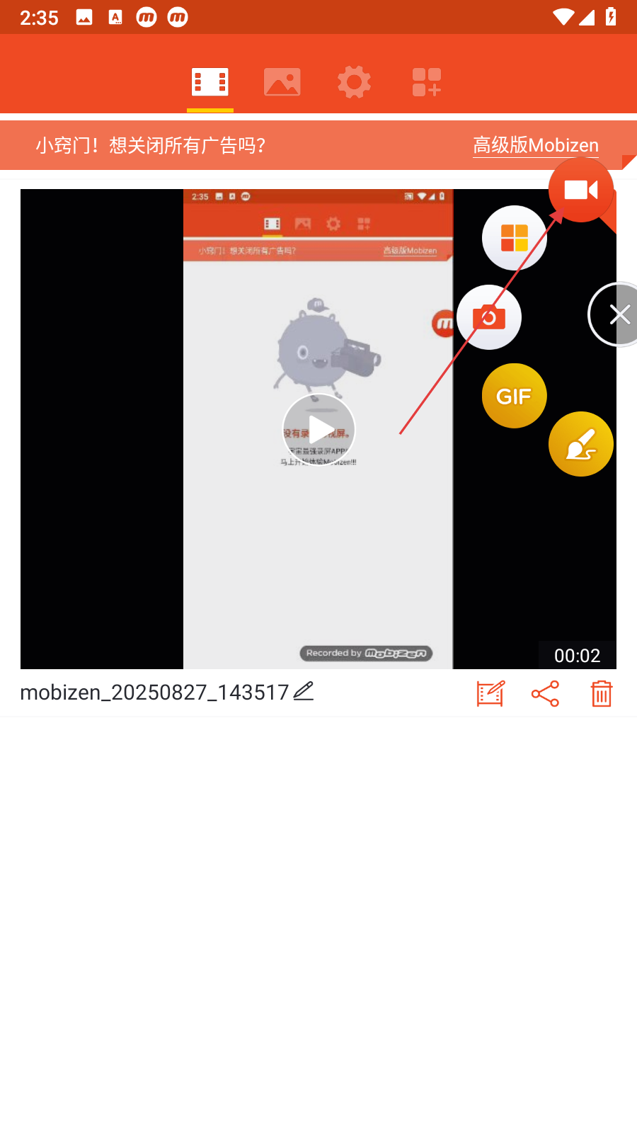 1、打開Mobizen應用進入主界面,在界面右側(cè)找到紅色攝像機形狀的錄屏按鈕,點擊該按鈕即可開始錄制手機屏幕內(nèi)容。