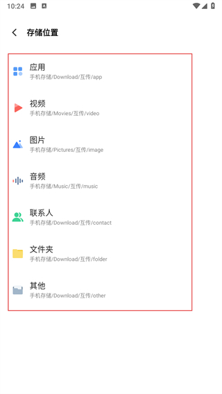 4、在存儲位置頁面中,即可查看各類文件對應(yīng)的具體存儲路徑。
