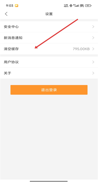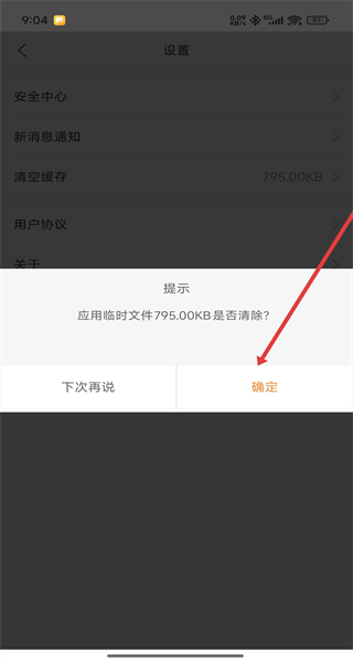 3、在設(shè)置界面,點擊清空緩存選項,彈出緩存清理提示框。
