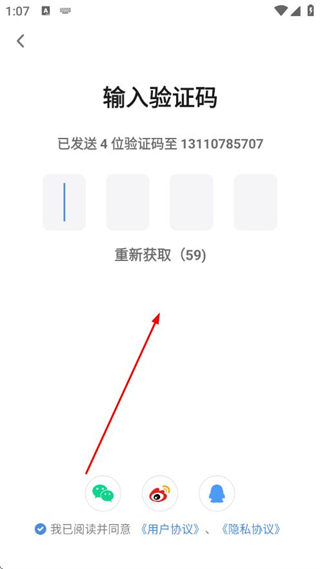 3、在輸入驗(yàn)證碼頁(yè)面輸入收到的4位驗(yàn)證碼,即可完成注冊(cè)操作。