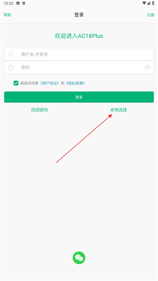1、打開ac18plus的APP,進入時點擊本地連接的按鈕。