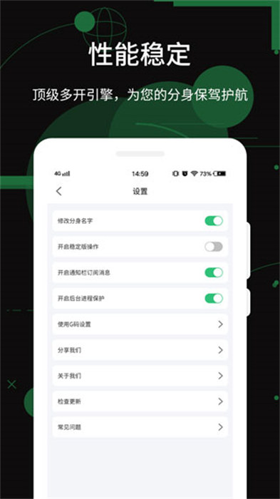 1.支持大多數(shù)應(yīng)用免費多開,社交、游戲、生活軟件統(tǒng)統(tǒng)都能多開。