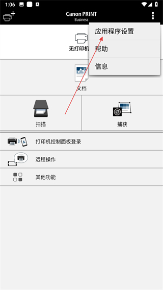 1、打開佳能移動打印應用,點擊界面右上角的三點菜單圖標。