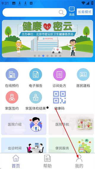 1、打開健康密云app,點(diǎn)擊底部導(dǎo)航欄中的我的選項(xiàng)。
