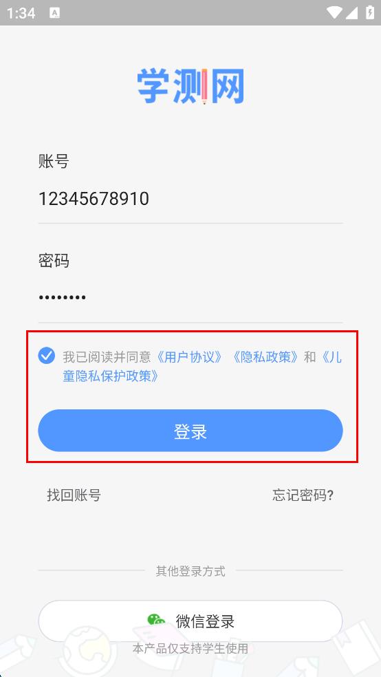 4、勾選已閱讀并同意相關(guān)協(xié)議和政策,點(diǎn)擊登錄,即可完成學(xué)測(cè)網(wǎng)的登錄。
