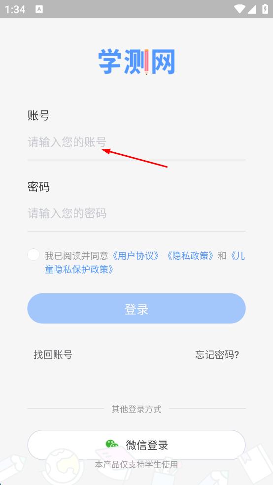 2、在學(xué)測(cè)網(wǎng)登錄頁面,點(diǎn)擊賬號(hào)輸入框,輸入賬號(hào)。