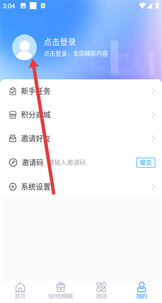 2、在進(jìn)入到我的主頁后,可以通過點擊頭像區(qū)域,進(jìn)行登錄操作。