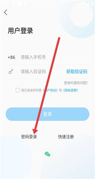 3、跳轉(zhuǎn)到用戶登錄頁面中,可以點擊下方密碼登錄按鈕,切換使用密碼登錄。