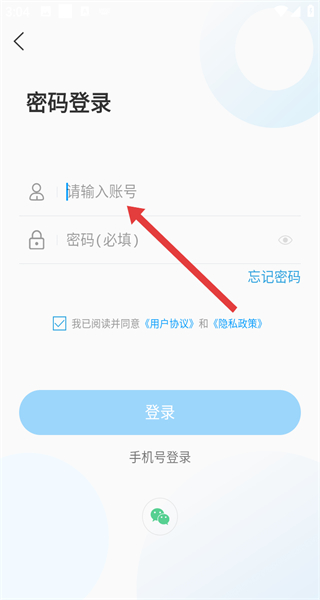 4、切換到密碼登錄界面,點擊輸入框依次填寫賬號和密碼信息后,點擊登錄按鈕即可完成登錄。