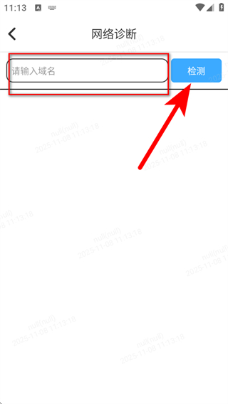 3、在網(wǎng)絡(luò)診斷頁面,輸入域名后點擊檢測,即可完成網(wǎng)絡(luò)檢測操作。