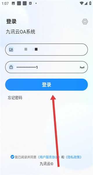 4、在填寫好登錄信息后,點擊登錄按鈕,完成九訊云OA系統(tǒng)的登錄操作。