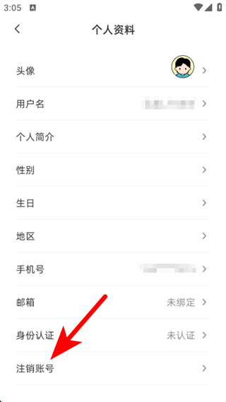 3、在個人資料的頁面,點擊注銷賬號按鈕,進入注銷須知的頁面。