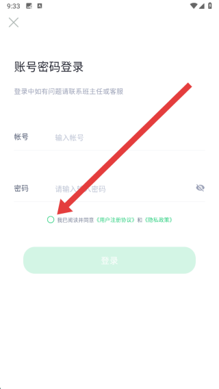 3、在進(jìn)入到登錄頁面時(shí),需先點(diǎn)擊勾選我已閱讀并同意按鈕。