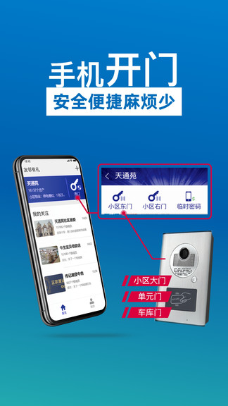 1. 用手機(jī)打開小區(qū)大門,給訪客遠(yuǎn)程開門,共建平安小區(qū)。