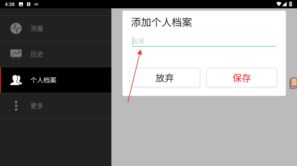 2、點(diǎn)擊添加個(gè)人檔案后,彈出添加窗口,在名稱(chēng)輸入框中,輸入要添加檔案的名稱(chēng),比如自己的名字或特定標(biāo)識(shí),輸入完成后,點(diǎn)擊保存按鈕,即可完成基本檔案信息錄入。