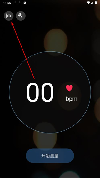 1、打開(kāi)知心心率檢測(cè)APP,點(diǎn)擊左上角的歷史記錄圖標(biāo)。