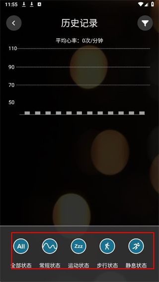 3、在彈出的篩選選項(xiàng)中,選擇想要查看的脈搏狀態(tài),即可查看對(duì)應(yīng)狀態(tài)下的脈搏數(shù)據(jù)。