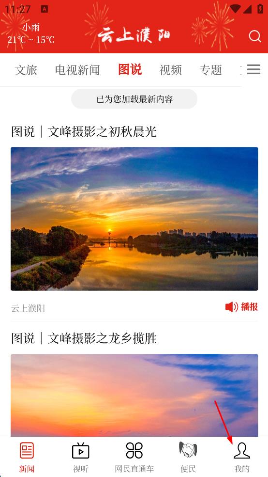 1、打開云上濮陽應(yīng)用,在首頁點擊右下角“我的”選項,進入個人中心頁面。